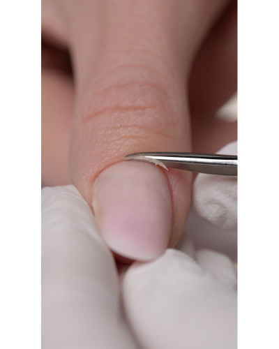 A ponta curva em formato de gancho acompanha a linha natural da cutícula, permitindo uma remoção precisa mesmo nas zonas de difícil acesso. Este formato melhora o controlo do corte e proporciona um movimento mais ergonómico da mão.